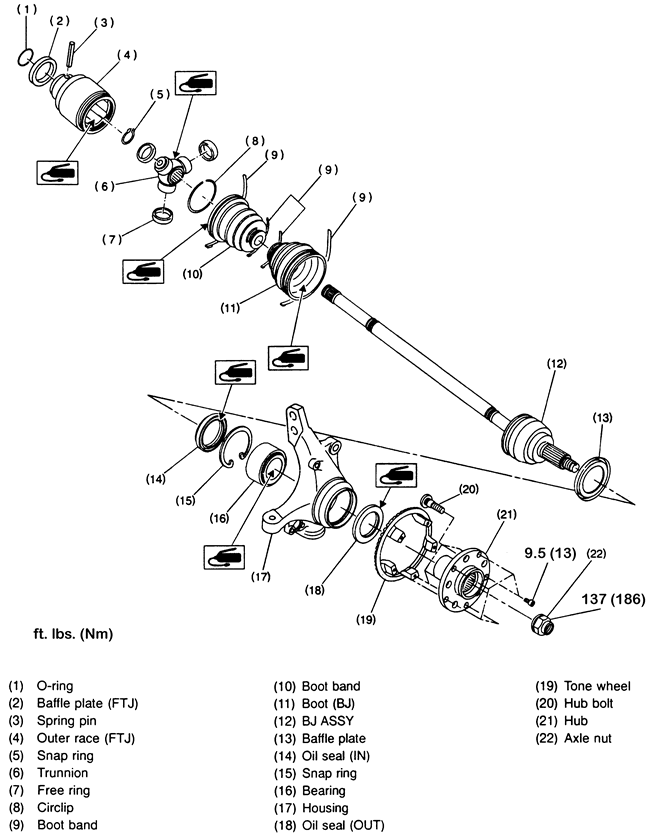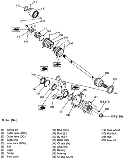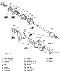| Fig. 2: Exploded view of the front halfshaft-automatic transmission |