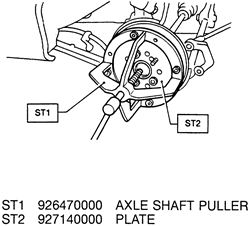 | Fig. 3: Be sure not to damage the threads when removing the front or rear halfshafts |