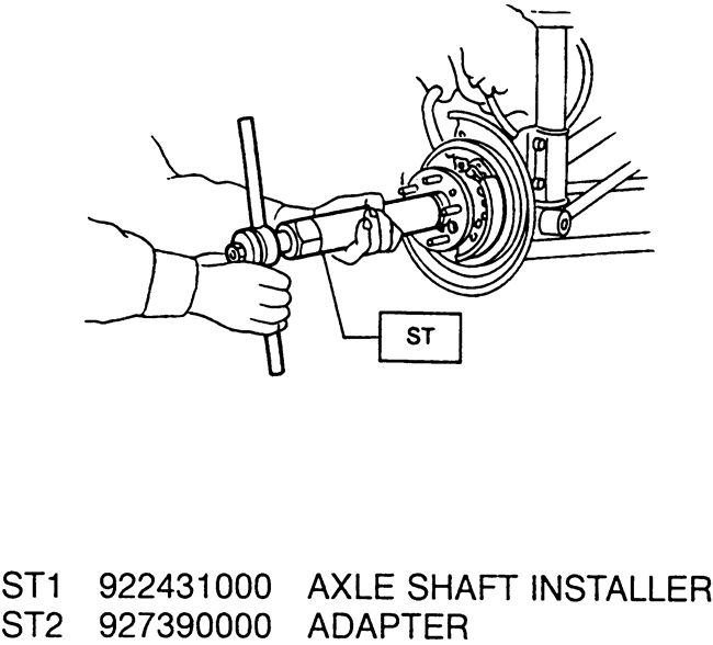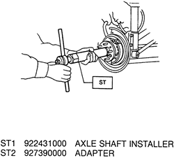 | Fig. 4: To avoid using a hammer when installing the halfshafts, use the proper tools as shown |