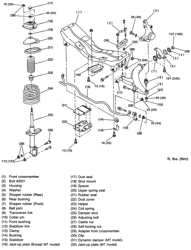 - Locknut. Tighten it to 36-43 ft. lbs. (47-56 Nm).