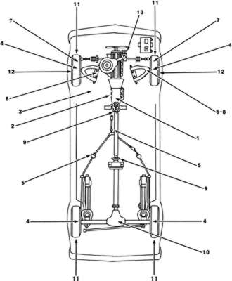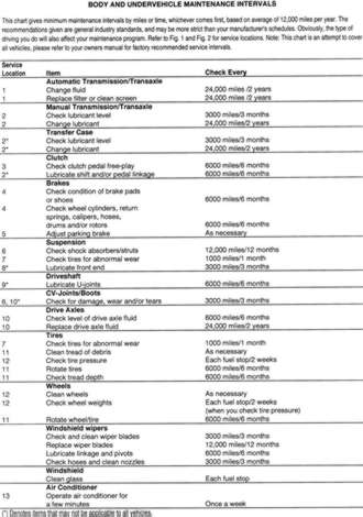 | Fig. 3: Typical body and undervehicle maintenance locations (Refer to chart for descriptions) |