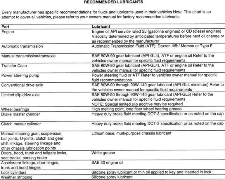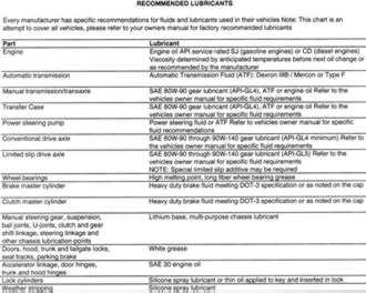 Oil; Gear Oil; ATF; Wheel Bearing Grease; Brake Fluid; Chassis Grease;