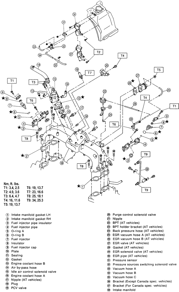 | Fig. 2: Exploded view of the intake manifold and related components-2.5L engine |