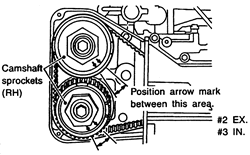 | Fig. 7: Position the camshaft as shown to adjust No. 3 intake valve and No. 2 exhaust valve |