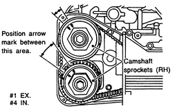 | Fig. 9: Position the camshaft as shown to adjust No. 4 intake valve and No. 1 exhaust valve |