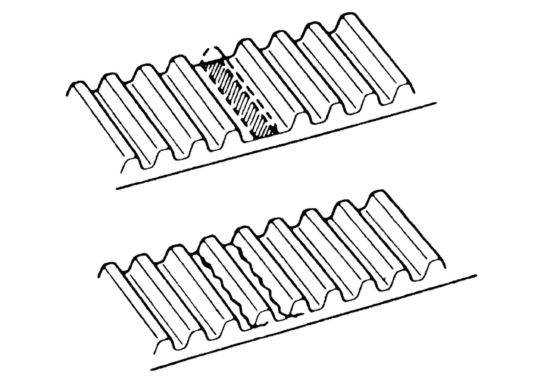 Inspect both sides of the timing belt. Replace the belt with a new one if any of the following conditions exist: