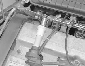 | Attach the clip to ground then crank the engine to check for spark.
