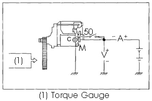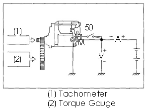 - Using the same test equipment used for load test, apply brake to lock starter armature. Then measure voltage, current, and torque values