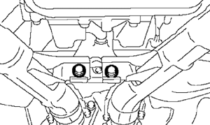 - Tighten the bolt which holds the center exhaust pipe to hanger bracket