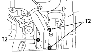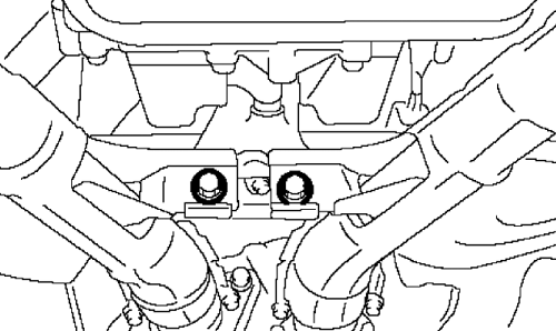 - Tighten the bolt which holds the center exhaust pipe bracket to transmission