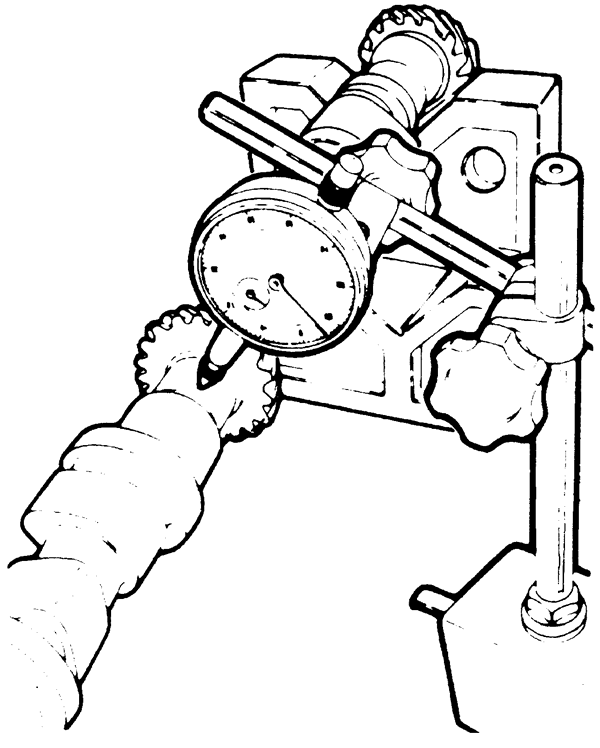 To check the accuracy of the original indicator reading, continue to rotate the crankshaft until the indicator reads zero. If the lift on any lobe is below specified wear limits listed the camshaft and the valve tappets must be replaced.