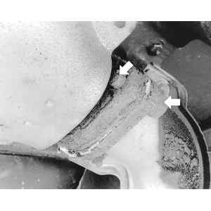 Do not perform exhaust repairs or inspection with a hot engine or exhaust system. Allow the system to cool completely before attempting any work. Exhaust systems are noted for sharp edges, flaking metal and rusted bolts. Gloves and eye protection are required. A healthy supply of penetrating oil and rags is highly recommended. Never spray penetrating oil onto a hot exhaust component.