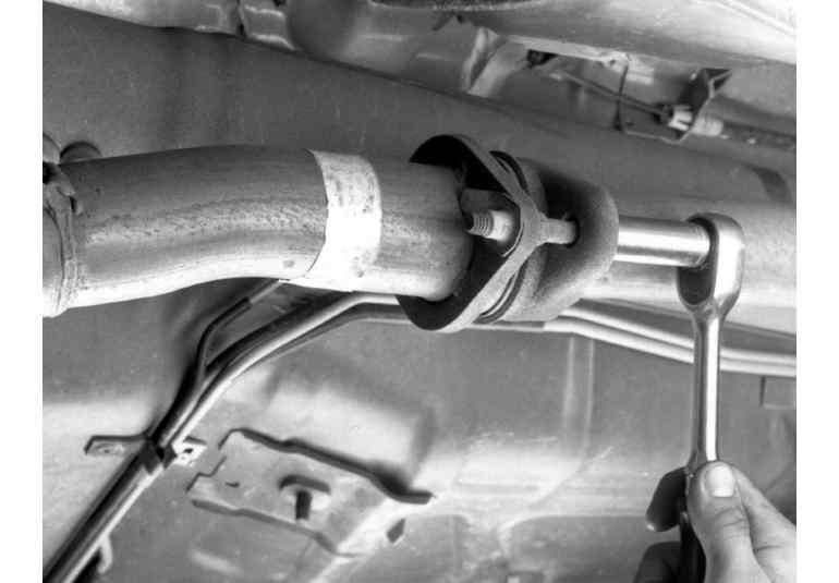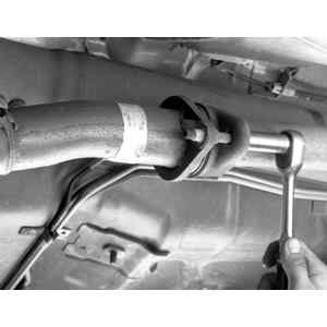 Before removing any component of the exhaust system, always squirt a liquid penetrating oil onto the fasteners for ease of removal. If you have the time, spray the fasteners and allow them to soak overnight.