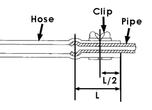 - Overlap specification: approx. 15 mm (0.59 in ) from hose end. L = 17.5 ±2.5 mm (0.689+0.098 in)