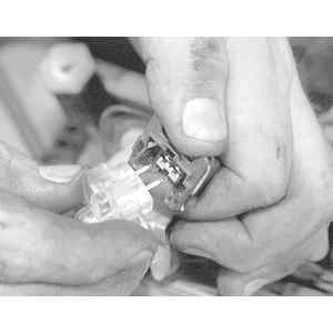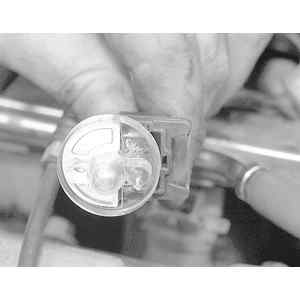 If one or more injectors are found to be not inoperative, testing the injector driver circuit and computer can be accomplished using a "noid" light. First, with the engine not running and the ignition key in the OFF position, remove the connector from the injector you plan to test, then plug the "noid" light into the injector connector. Start the engine and the "noid" light should flash, signaling that the injector driver circuit is working. If the "noid" light flashes, but the injector does not click when plugged in, test the injector’s resistance. Resistance should be between 13.8-15.2 Ohms. Repeat this procedure on each injector, noting which cylinder(s) are faulty.