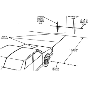 When adjusted properly, the lights should not glare in oncoming traffic's windshields, nor should they illuminate the passenger compartment of vehicles driving in front of you. These adjustments are rough and should always be fine-tuned by a repair shop that is equipped with approved, headlight aiming tools. Improper adjustments may be both dangerous and illegal. Temporary headlight adjustment may be made using a wall, using the following procedure, or on the rear of another vehicle.