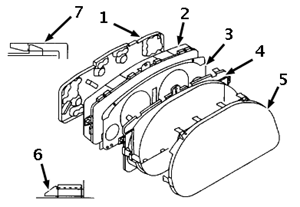 - Install meter glass (E), reflector (D), and window plate (C) to inner case and engage claw (G)
