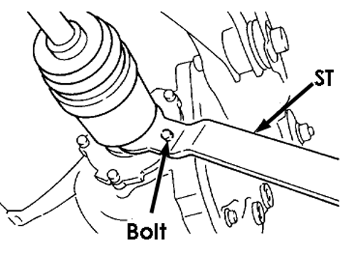 If axle shaft is difficult to remove from rear differential, use ST to remove it. ST2 8099PA100DRIVE SHAFT REMOVER