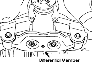 - After installing rear differential carrier on vehicle, remove filler plug and replenish gear oil up to upper level mark