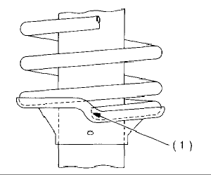 - Set the coil spring correctly so that its end face (1) fits well into the spring seat as shown in the figure