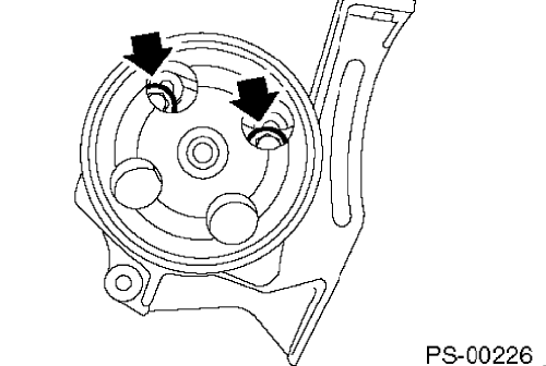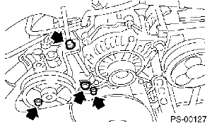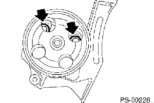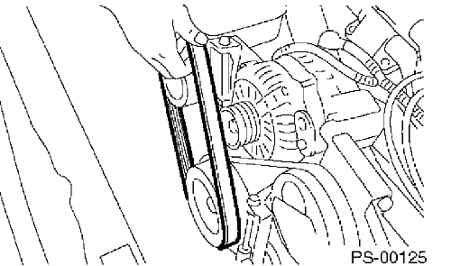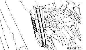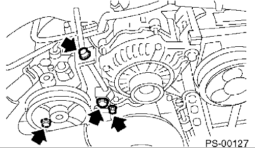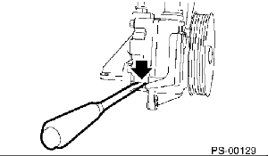 - Lock bolt and slider bolt and remove power steering pump drive V-belt