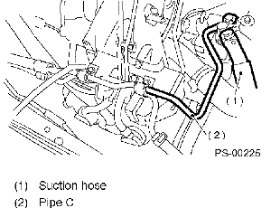 Do not allow fluid from the hose end to come into contact with pulley belt. To prevent foreign matter from entering the hose and pipe, cover the open ends of them with a clean cloth.