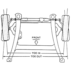 | With toe-in, the distance between the wheels is closer at the front than at the rear