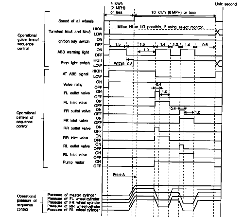 NOTE: In the event of any trouble, the sequence control may not be operative. In such a case, activate the sequence control, referring to "ABS SEQUENCE CONTROL WITH DIAGNOSIS CONNECTOR". When the diagnosis terminal is connected to the diagnosis connector, the sequence control will not operate.