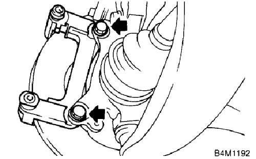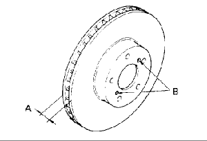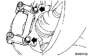 NOTE: If disc rotor seizes up within hub, drive disc rotor out by installing an 8-mm bolt in holes B on the rotor. Clean mud and foreign particles from caliper body assembly and support.
