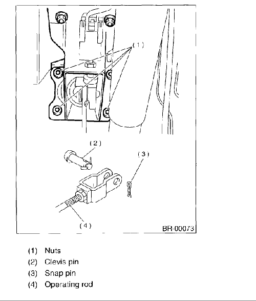 - Operating rod to brake pedal with clevis pin and snap pin