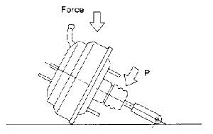 NOTE: Be careful not to drop brake booster. Brake booster should be discarded if it has been dropped. Use special care when handling operating rod. If excessive force is applied to operating rod, sufficient to cause a change in the angle in excess of ±3°, it may result in damage to the power piston cylinder. Use care when placing brake booster on the floor.
