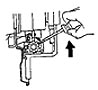 · Отожмите поршень суппорта, вытягивая суппорт от руки к наружной стороне автомобиля.