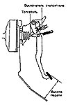 · Установите на место выключатель стоп-сигнала и его контргайку. Выключатель вверните до момента его соприкосновения с педалью.